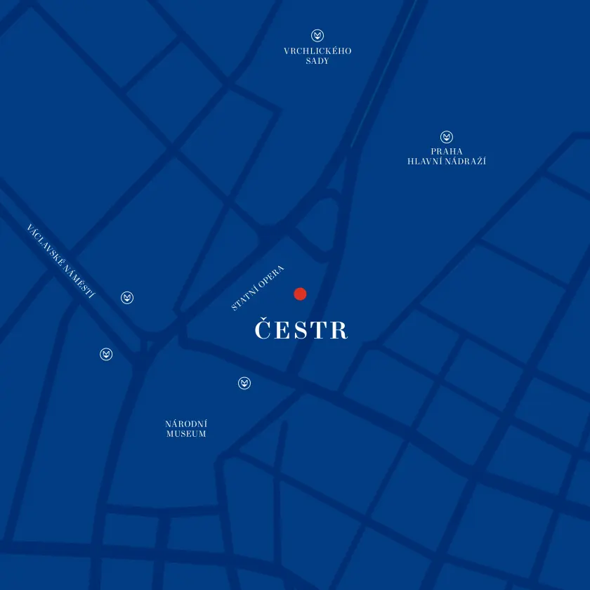 The best way to reach us is by public transport – take the metro to Muzeum (use exit E7), or walk from the Václavské náměstí tram stop (ideally along the right-hand side of the square). You can also come by car – the nearest parking is at Wilsonova. Coming by bike is for the brave and patient.